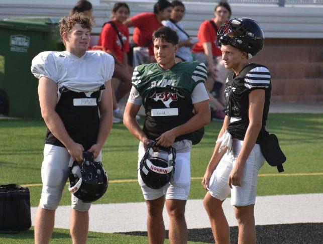 The varsity Rams took the early shift of practice, beginning at 9 a.m. with the sub-varsity teams joining them on the field at 10 a.m. Varsity was led on to the field by senior quarterback, Owen Gadd, who immediately began taking snaps from one of the new offensive lineman, looking to take over the starting role at center. Gadd was followed by a couple other key players on this years roster, proving their leadership and eagerness to take the field.