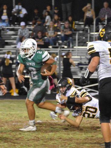 Kalder Halbrook(#2) takes off on a run past Chico defenders. Halbrook had a huge game with 48 passing yards, 148 rushing yards, 1 touchdown and 2 tackles on defense Photo Credit: Kellci Ford